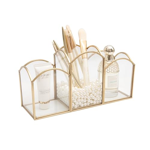 HARLIANGXY Porte-pinceaux de maquillage vintage en verre, Or...