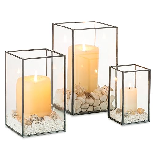 Nuptio Lanterne Ouragane Noire Verre : Ensemble 3 Bougeoirs...