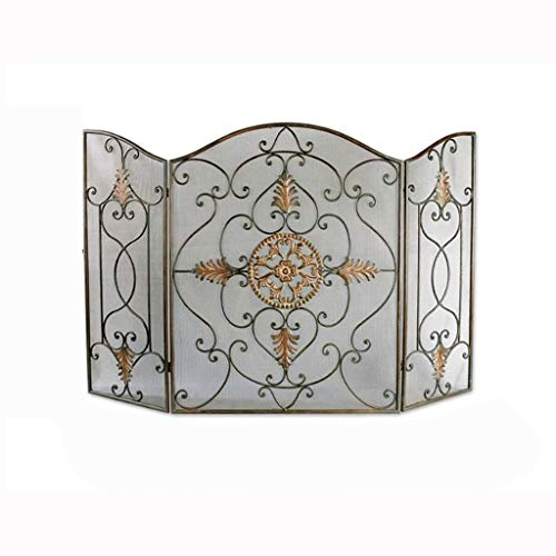 SERUMY Pare-étincelles Cheminée écran 3 Panneau Ornement Fer...