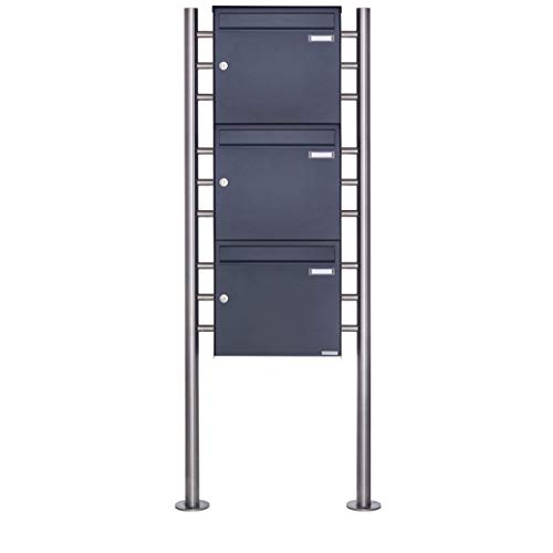 Lot de 3 boîtes aux lettres sur pied - 3 compartiments - Des...