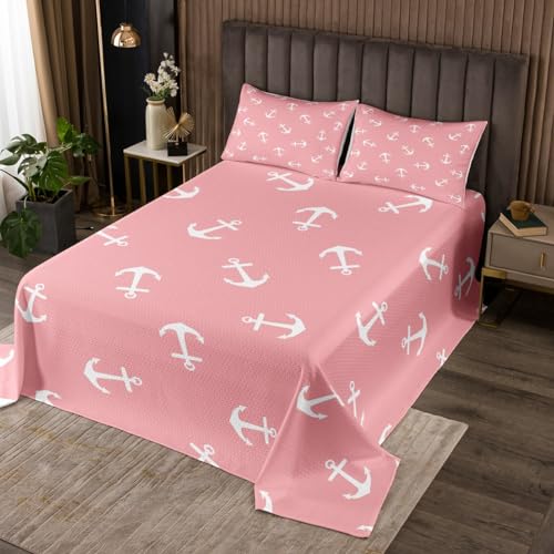 Ancre blanche bateau à voile rose couvre-lit matelassé