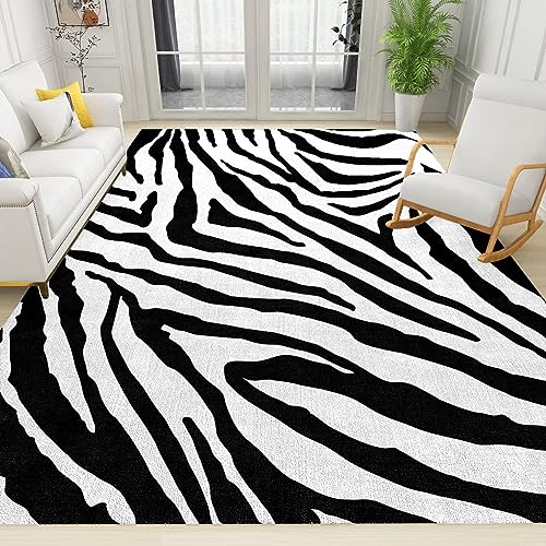 Tapis de Design Motif Zèbre Noir Blanc, 60x90 cm, Moquette d...