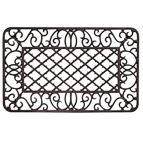 Paillasson tapis-brosse essuie-pieds décoratif fer marron an...