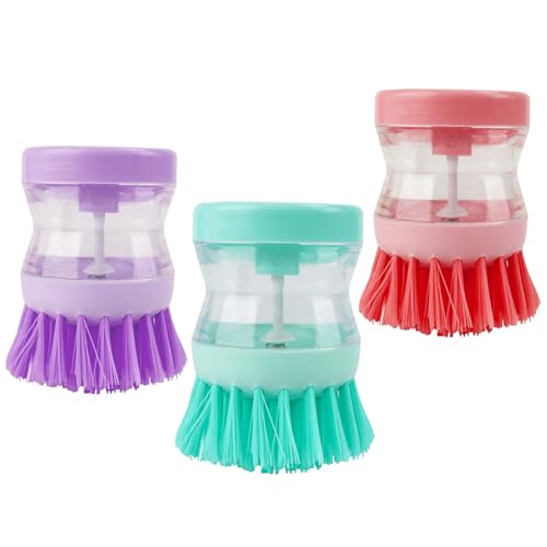 Brosse à vaisselle pression liquide, 3 brosses nylon