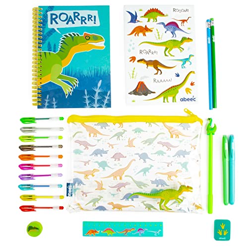 Ensembles papeterie et trousses coloris assortis dinosaures