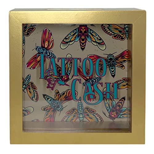 Tirelire Tattoo bois fenêtre visualisation boîtier blanc - É...