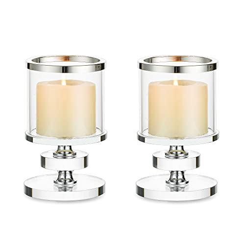 Glasseam Bougeoir Pilier Argenté, Bougeoir Hurricane Crushed...