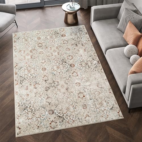 Tapis Retro Tapis Vintage Beige Marron Gris Ornamental Flora...