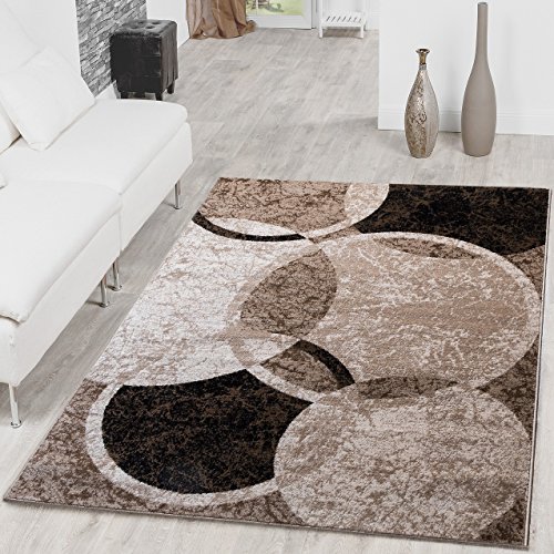 Tapis chiné motifs circulaires salon marron beige noir 120x1...