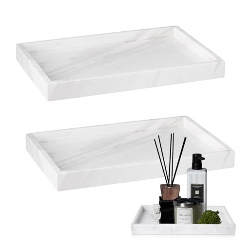 Plateau Rangement Salle de Bain Marbre Blanc