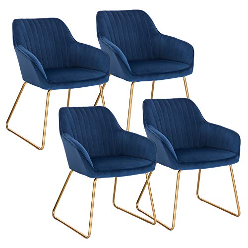 WOLTU 4 Chaises Salle à Manger Velours Pied Métal Réunion Bl...