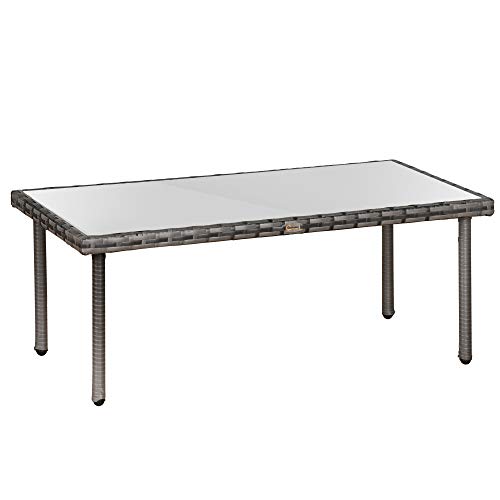 Outsunny Table Basse Verre Trempé Résine Tressée Imitation R...