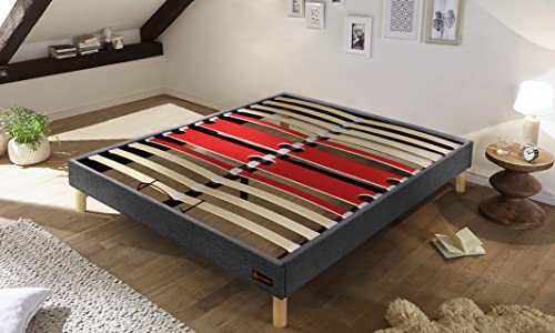 Sampur Lit Eva 140x190cm Gris Foncé Cadre Sommier Inclus Ult...