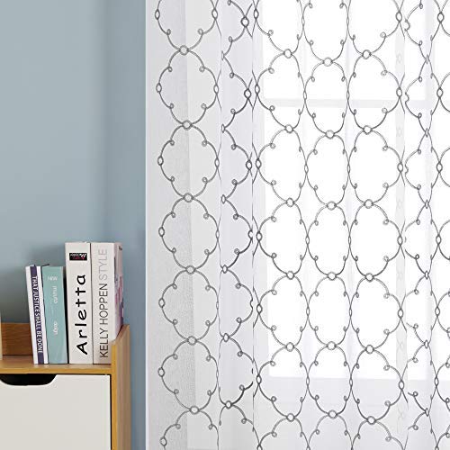 Lot de 2 Rideaux Voilages Effet Lin Motif Gris 140x240 cm