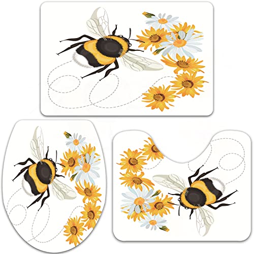 Tapis de Bain Absorbant 3 Pièces Bourdon Jaune Abeille Feuil...
