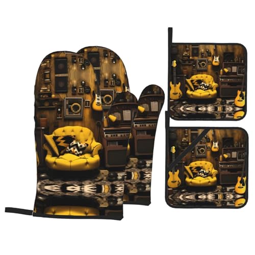 Ensemble de 4 pièces de cuisine moutarde noir jaune – Gant d...