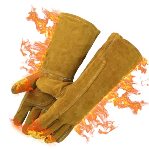 Cimvidi gants ignifuges barbecue cuir soudeur résistant marr...