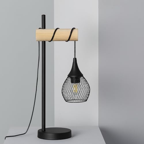 LEDKIA Métal Bois Noir Lampe E27 Décoration