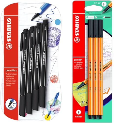 Stylos Noir Pointe Fine, Feutres 10, Professionnel