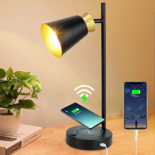Depuley LED Vintage Rotative Lampe de Table Noire Or, 10 W Q...