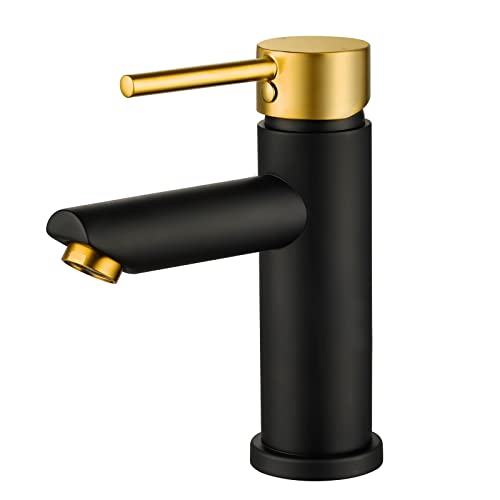 Peppermint Robinets de lavabo noirs avec levier doré brossé,...