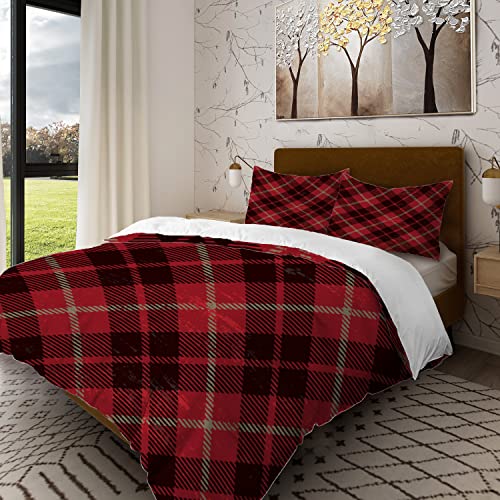 Batmerry Grunge Retro Vintage Plaid Queen Size 3 Pieces Bedd...