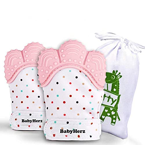 Gant dentaire silicone 2 pièces bébé rose sans BPA