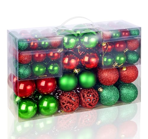 100 Pièces Boules de Noël Rouges et Vertes, ilauke 3 Différe...