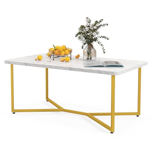 LIFEZEAL Table Basse Marbre Effet, Table Moderne Acier, Salo...