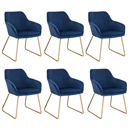 Wolut Lot de 6 Chaises Salon Cuisine Velours Métal