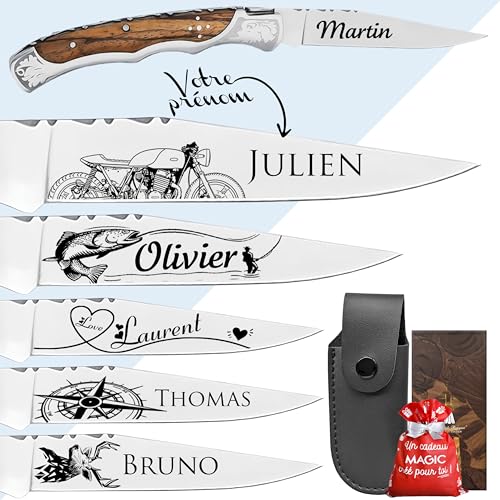 Kmagic Couteau Personnalisé Marron & Gris - Lame Personnalis...