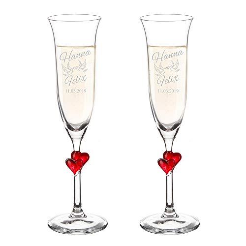 AMAVEL Flûtes à champagne tourtereaux personnalisées avec cœ...