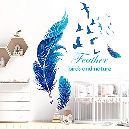 YXHZVON Stickers Muraux Plume Bleu, 129x81cm Grand Autocolla...