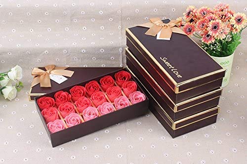 Lot de 24 fleurs de savon rose dans une boîte cadeau, parfum...