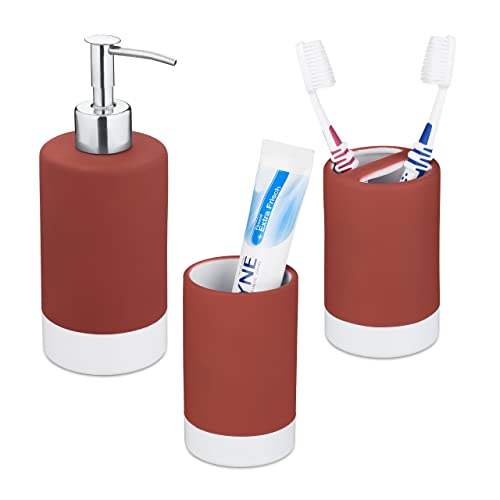 Relaxdays Set Salle de Bain 3 pièces, Distributeur Savon, go...