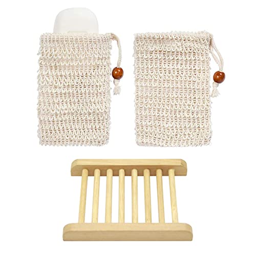 Sac à Savon en sisal, Porte-Savon en Bois, 2 pièces Sacs à S...
