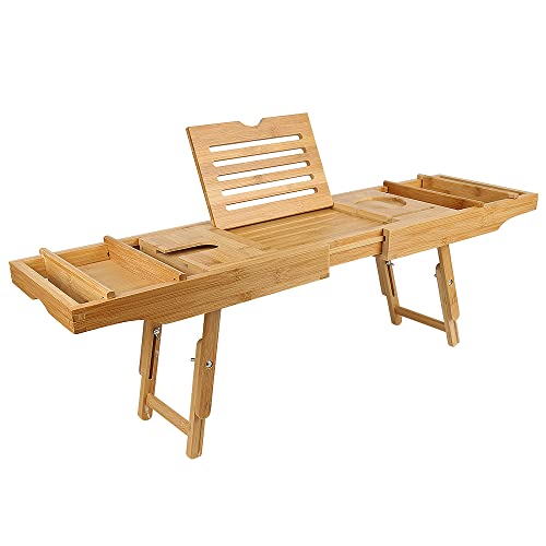♡ 【TAILLE RÉGLABLE】: L''étagère de baignoire en bambou a l...