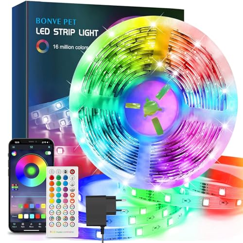Bonve Pet Ruban LED 5M Bleutooth Bande LED RGB LED Chambre B...