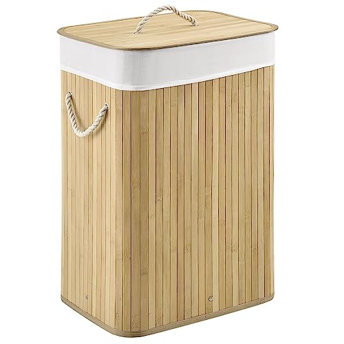 Juskys Panier à linge Bambou Curly naturel - Récupérateur de...