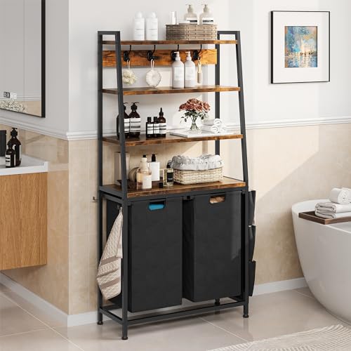 Panier à linge autonome avec étagères et crochets, 2 sacs am...