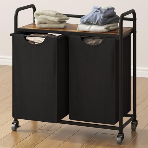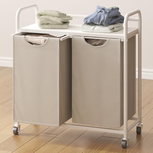 VASAGLE Panier à Linge Double, Corbeille Linge Sale, avec 2...