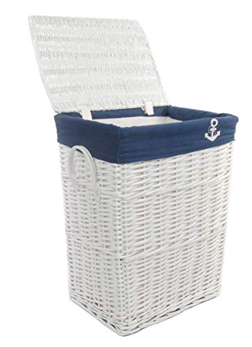 Dvier panier linge carré osier blanc bleu marine 48x36