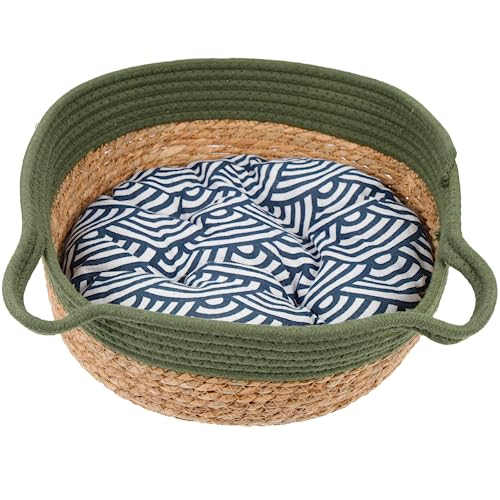 POPETPOP Panier en osier tissé pour chat – Lit rond en corde...