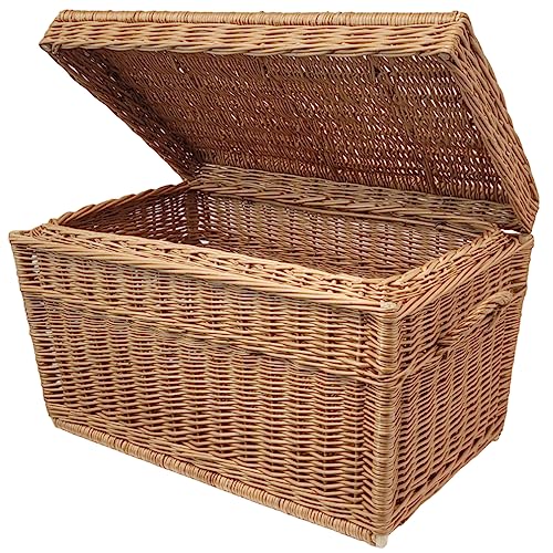 Panier en osier 70 cm avec couvercle à charnière - Fait à la...