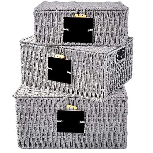 Outbrols 3 Paniers Rangement Osier Naturel Couvercle