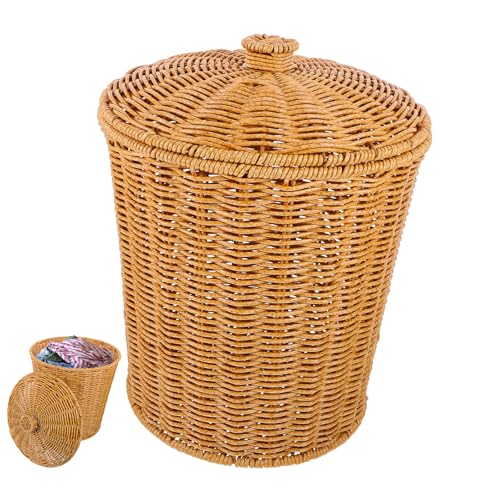 Panier à déchets en osier avec couvercle, rangement pour vêt...