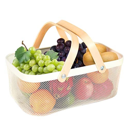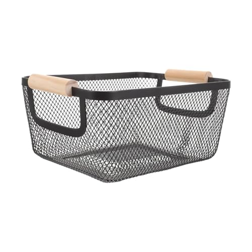 Qianly Panier de rangement en métal avec poignée en bois, pa...