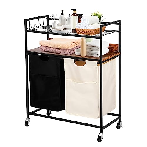 Panier à linge corbeille, panier double roulant, panier en f...