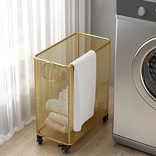 Panier métal doré roulant, rangement linge