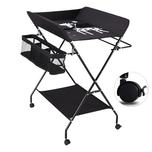 Table à langer pliable bébé avec paniers et matelas, roues,...